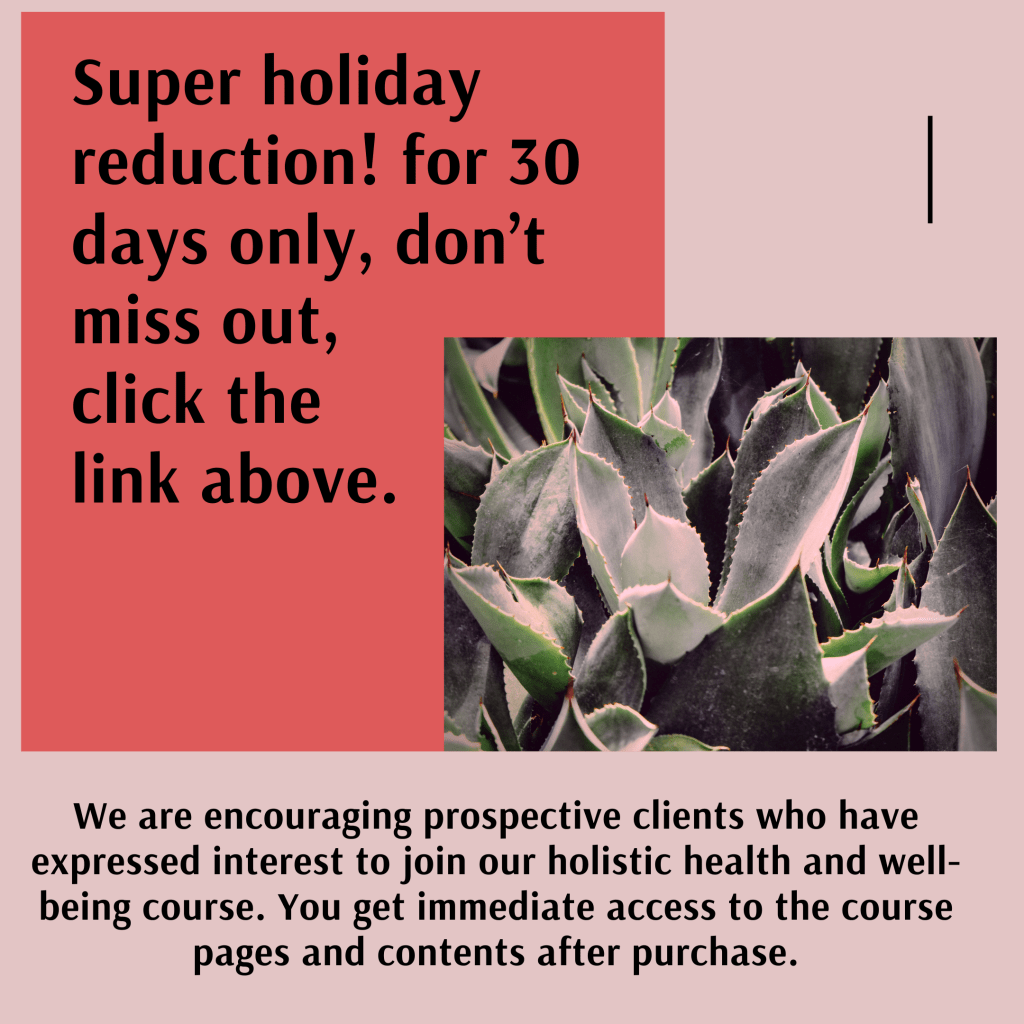 Here’s to warm your hearts this lovely summer, hello working mothers, ladies, women, entrepreneurs, take advantage of our holiday deal and enjoy the wide range of benefits from our holistic health and well-being course, towards your wellness and healthier lifestyle, to help towards becoming a happier and more productive you, come onboard our mental and physical health booster course, click the link below, to get started, see you inside: